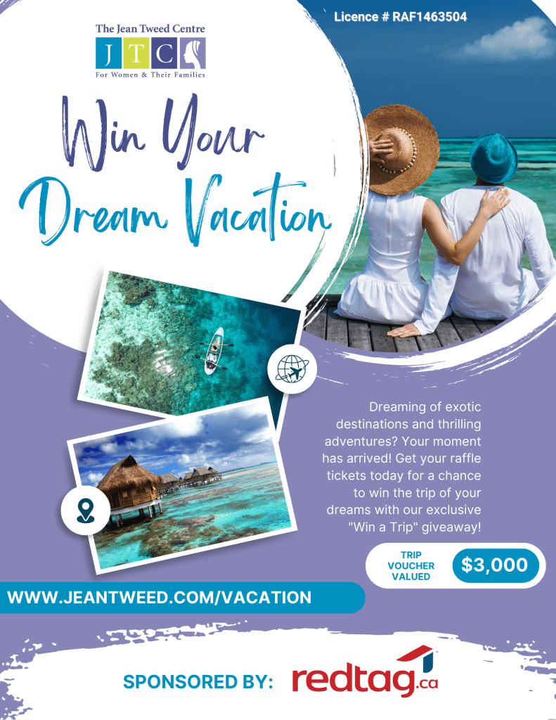 The Jean Tweed Centre is thrilled to launch our first-ever Online Raffle, with a grand prize of a $3,000 travel voucher generously sponsored by RedTag.ca!